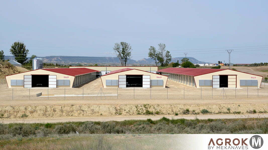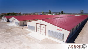 Noyau formé par trois hangars préfabriqués de 15 mètres de large pour 120 mètres de long. Conception spécifique et sur-mesure pour tout le complexe d’élevage, avec couloir central de collecte des œufs menant à la salle de sélection des œufs. Fabrication en deux mois et assemblage en un mois. En trois mois, le projet est complètement terminé. La mise en marche est immédiate.